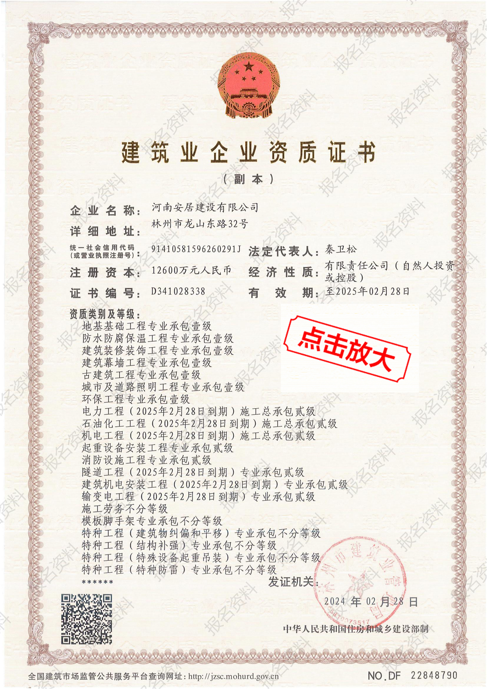 房建、市政十項一級,共二十余項資質(zhì)
